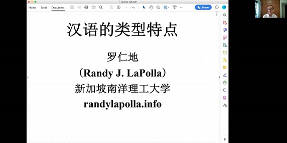 2021年4月22日下午,新加坡南洋理工大学罗仁地教授通过线上形式做客球王会,带来一场题为《汉语的类型特点》的学术讲座。讲座由杨旭博士主持,球王会语言学师生参与了讲座,此外还吸引了校外师生600余人参与。