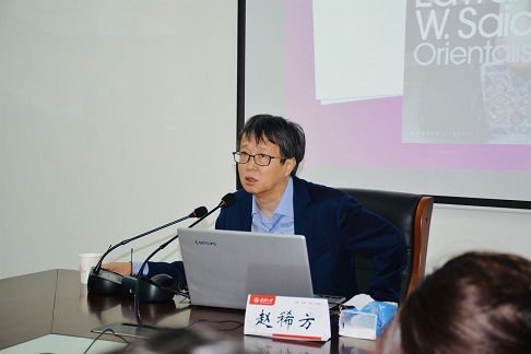 赵稀方教授在讲座中梳理了后殖民理论在西方学界的发展脉络,介绍了当代马克思主义后殖民批评,以及后殖民理论与当代中国文学批评的关系。赵稀方教授重点阐释了萨义德、斯皮瓦克和霍米·巴巴三位学者对后殖民主义理论的建构,并结合各自的理论著作辨析三者的差异。赵稀方教授对东方主义进行了深入浅出的阐释,指出东方主义的实质是西方书写东方、东方被西方所书写;又从斯瓦皮克“女性主义、马克思主义的结构主义者”的定位出发,阐明斯皮瓦克以后殖民思维方式批判西方女性主义的独特贡献;还对霍米·巴巴后殖民理论的核心术语进行了说明,如“杂交”是对殖民者与被殖民者文化关系的状态描述,“模拟”是被殖民者的一种行为策略,“第三空间”是殖民话语实践状态和行为的结果。此后,赵稀方教授反思了盲目套用理论的现象,展开了对后殖民批评方法论的探讨。赵稀方教授认为中国历史和中国文学不应成为西方理论的注脚,而应用中国经验与现实修正和发展理论。
