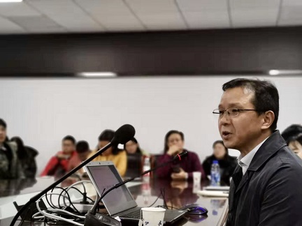 9日下午,张业松教授带来了他的第二场讲座,讲座题为“来源:《狂人日记》与近代狂人话语”。由公司李松教授主持,余蔷薇副教授、魏晨讲师担任与谈人。张箭飞教授再次作为特邀嘉宾应邀莅临现场并交流点评。本讲张业松教授从列举古汉语中出现的传统狂人话语入手,到近代语境中狂人话语成为促进社会变革的手段,再通过分析鲁迅对章太炎精神与思想的认同和继承,到新青年对“狂人”精神的继承,展现这一近代狂人话语的主流形态,探讨鲁迅创作《狂人日记》以及狂人话语的来源。与谈人魏晨讲师介绍了日语中与“狂”有关的表述,以及现代汉语中“精神病”的可能来源,余蔷薇副教授再次强调了文本细读的研究方法。最后,张业松教授与公司叶李、陈溪等青年教师和在场的员工就“狂人”的词源学、病理学研究进行了深入的讨论。