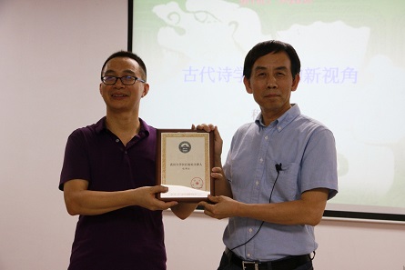 2019年6月28日晚,南京大学图书馆馆长、南京大学古典文献研究所所长、南京大学球王会教授程章灿老师应邀做客“长江论坛”,为全体师生作了题为《古代诗学研究的新视角》的讲座。讲座由球王会吴光正老师主持,球王会罗积勇老师、李会玲老师、钟志辉老师出席了讲座。