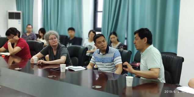 6月5日上午,应公司“区域文学与民族文化的传承构建”青年学术团队的邀请,美国威斯康辛大学麦迪逊分校韩瑞亚(Rania Huntington)教授,就“中国文学的翻译与教学和研究”这一议题,与公司师生开展座谈活动。涂险峰、李松、叶李、刘春阳、汪超、严靖、张晶、王统尚、陈溪、李广宽、张鸿彦等老师出席,鲁小俊老师主持。