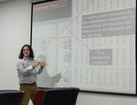 讲座主要分四个专题:(1)敦煌手稿及写本学概论(Introduction to Codicology and the Dunhuang Manuscripts);(2)中国中世纪佛教写本的构想与形成(Conceiving and Shaping Buddhist Manuscripts In Medieval China);(3)图像与符号:佛教写本的修正、校对、审定和美饰(Images and Signs: Correcting, Proofreading, Finalizing and Illuminating Buddhist Manuscripts);(4)敦煌中世纪佛教:佛教伪经中发掘的实践和信仰的案例(Dunhuang Medieval Buddhism: Examples of Practices and Beliefs as found in Buddhist Apocrypha)。