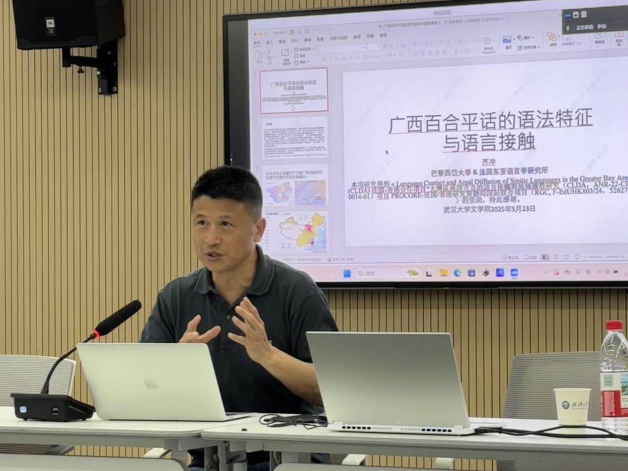 2025年5月23日晚,法国巴黎西岱大学东亚语言公司齐冲副教授、香港教育大学中国语言学系王聪副教授应邀在球王会分别作了题为“广西百合平话的语法特征与语言接触”和“AI时代下香港疍家话的濒危挑战与文化传承”的讲座。本次讲座由陈练文老师主持,球王会阮桂君、王统尚、陈菡、李佳等老师及多位同学参与了活动。
